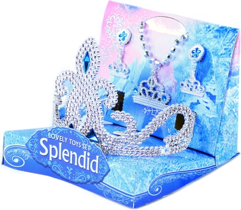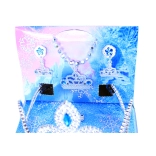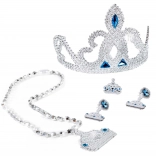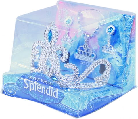 Spraw swojej małej księżniczce radość dzięki tej czarującej zestawie, która obejmuje koronę, kolczyki, naszyjnik i pierścionek z niebieskimi zdobieniami.