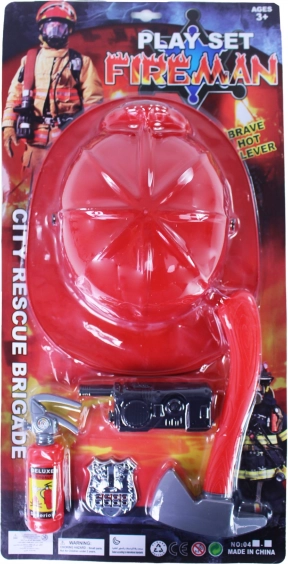 Do akcji ratunkowej! Ten dziecięcy zestaw strażacki zawiera hełm, siekierkę, gaśnicę, krótkofalówkę oraz odznakę – wszystko, czego potrzeba małym bohaterom. Wszystkie akcesoria wykonane są z wytrzymałego PVC.