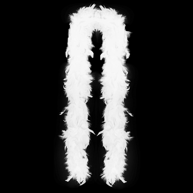 Dodaj swojemu wyglądowi odrobinę glamour i elegancji. To białe boa z piór jest lekkie, przyjemne w dotyku i łatwo łączy się z sukniami wieczorowymi oraz kostiumami karnawałowymi. Dzięki długości ok. 180 cm wygodnie nosi się je na ramionach i wokół szyi.