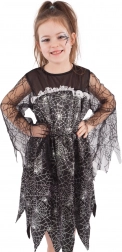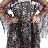 Kontrastowa srebrna pajęczyna na czarnej sukience, postrzępiony brzeg i siateczkowe rękawy nadają kostiumowi autentyczną, czarowniczą atmosferę, która wyróżni się na każdej imprezie.