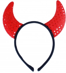 Czerwone rogi z cekinami na czarnej opasce stworzą wyrazisty diabelski look w mgnieniu oka – idealny dodatek na imprezę i karnawał.