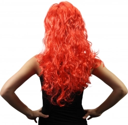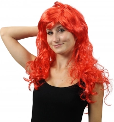 Wyrazista peruka z długimi falowanymi włosami i grzywką w intensywnie czerwonym kolorze doda każdemu kostiumowi charakterystycznego stylu. Idealna na karnawał, imprezy i cosplay, zapewnia wygodne noszenie oraz łatwą pielęgnację dzięki wysokiej jakości włóknom syntetycznym.
