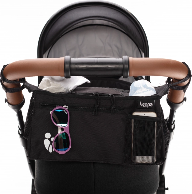 Praktyczny i przejrzysty organizer do wózka jest idealny na spacery z dzieckiem. Przednia część organizera zawiera dużą kieszeń na suwak na drobiazgi, które mama może potrzebować podczas spaceru. Przód jest również wyposażony w kieszonkę z siateczki na telefon komórkowy, dzięki czemu mama zawsze widzi, gdy coś dzieje się z telefonem, mimo trybu cichego. Dziecka to nie obudzi.