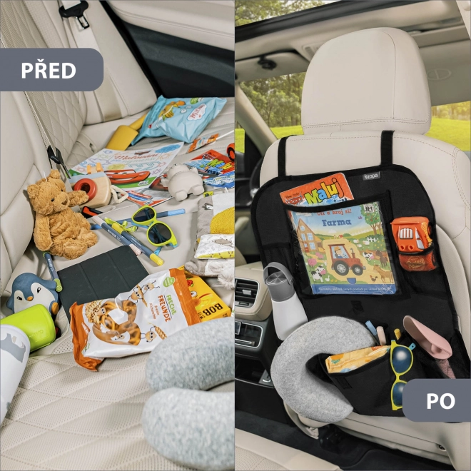 Praktyczny organizer na siedzenie z kieszenią na tablet to idealny towarzysz każdej podróży z dziećmi.