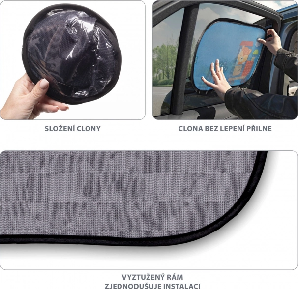 Osłony mają solidną, a jednocześnie elastyczną usztywnioną ramę, która ułatwia montaż oraz przenoszenie między samochodami. Dzięki składanej konstrukcji łatwo je przechowasz w kieszeni drzwi lub schowku. Pielęgnacja jest prosta – wystarczy sucha lub lekko wilgotna ściereczka.