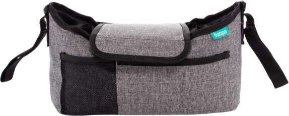 Organizer do wózka PLUS, dzięki idealnym wymiarom, pasuje do każdego wózka. Jest bardzo pojemny i zawiera aż 6 kieszeni, które spełnią potrzeby i wymagania każdej nowoczesnej mamy. Oczywiście ma przednią kieszeń na telefon oraz kieszeń na drobiazgi. Z tyłu organizera znajduje się większa kieszeń z siateczki na czasopisma. Główna komora została zaprojektowana tak, aby po bokach można było umieścić butelki. Montaż jest prosty i szybki dzięki haczykom na rzepy.