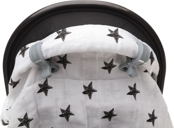 Praktyczny klips do wózka lub fotelika samochodowego, dzięki któremu łatwo, szybko i solidnie przymocujesz pieluchę lub ręcznik chroniący dziecko przed słońcem lub warunkami atmosferycznymi. Za pomocą klipsa możesz również przymocować smoczki czy zabawki, zapobiegając ich zgubieniu. Klips wykonany jest z wysokiej jakości plastiku, który nie zawiera BPA.