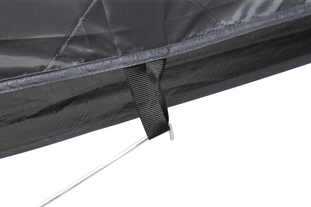 Solidne pręty, linki napinające i śledzie zapewniają szybkie rozstawienie oraz stabilność nawet przy gorszych warunkach pogodowych.