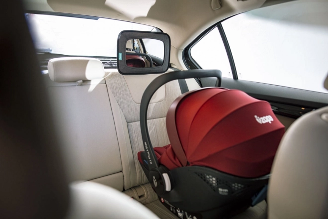 Montaż jest szybki i prosty – lusterko wystarczy zapiąć regulowanymi paskami do zagłówka. Produkt przeszedł wiele testów bezpieczeństwa, więc możesz polegać na bezpiecznym użytkowaniu przez całą podróż.