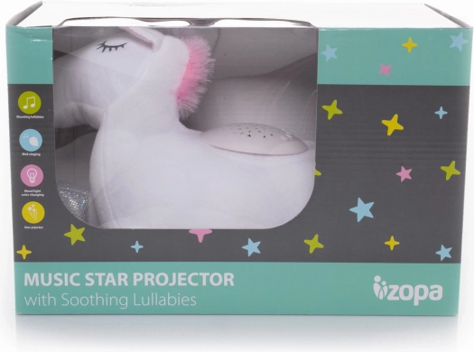Jednorożec oferuje 10 kołysanek oraz dźwięki natury, takie jak bicie serca i śpiew ptaków, które pomagają dzieciom spokojnie zasnąć.