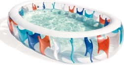 Ciesz się latem z przestronnym dmuchanym basenem 229 × 152 × 51 cm, który zmieści się w większości ogrodów i na tarasach. Przezroczyste ścianki z kolorowymi panelami dodają zabawnego charakteru i pozwalają mieć dzieci na oku podczas zabawy w wodzie.