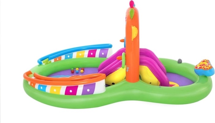 Zawiera: 1 basenik, 1 zjeżdżalnię, 1 bęben, 2 nadmuchiwane kółka, 1 mikrofon, 6 kolorowych piłeczek, 1 łatkę naprawczą.