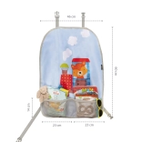 Dzięki szerokiej kieszeni łatwo przechowasz zabawki, książki, butelki, chusteczki nawilżane czy drobne przekąski. Wytrzymała tkanina zapewnia długą żywotność i łatwą pielęgnację – wystarczy przetrzeć wilgotną ściereczką.