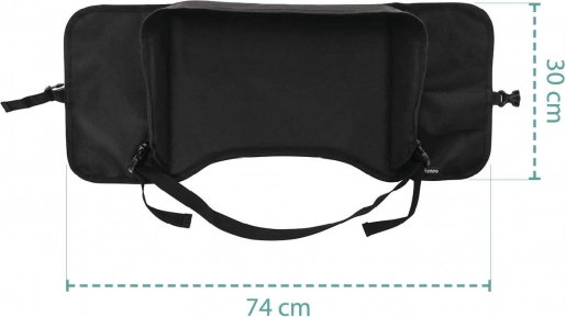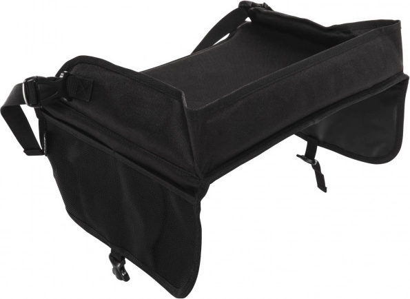 Dzięki regulowanemu paskowi mocującemu stolik łatwo przymocujesz do większości dziecięcych fotelików samochodowych z wysokim oparciem. Wytrzymała tkanina jest łatwa do czyszczenia, dlatego świetnie sprawdzi się także jako tacka na przekąski. Czarne wykończenie jest uniwersalne i wygląda czysto oraz elegancko.