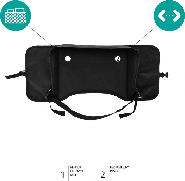 Koniec z nudnymi podróżami. Stolik zapewnia dzieciom wygodną i stabilną powierzchnię do kolorowanek, klocków lub tabletu. Boczne kieszenie trzymają wszystko pod ręką – kredki, chusteczki i małe zabawki – a wnętrze auta pozostaje uporządkowane.