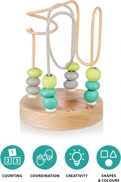Zabaw małych odkrywców uroczym drewnianym labiryntem z koralikami w kształcie żyrafy. Ta interaktywna zabawka wspiera małą motorykę, koordynację ręka–oko oraz rozpoznawanie kolorów, jest wykonana z trwałego drewna i malowana farbami na bazie wody, a dzięki kompaktowym wymiarom sprawdzi się także w podróży.