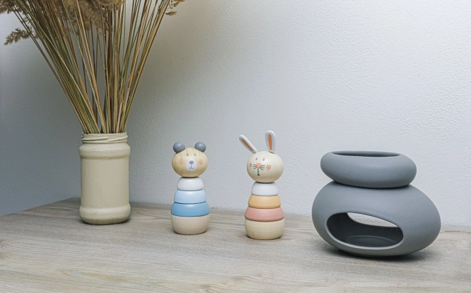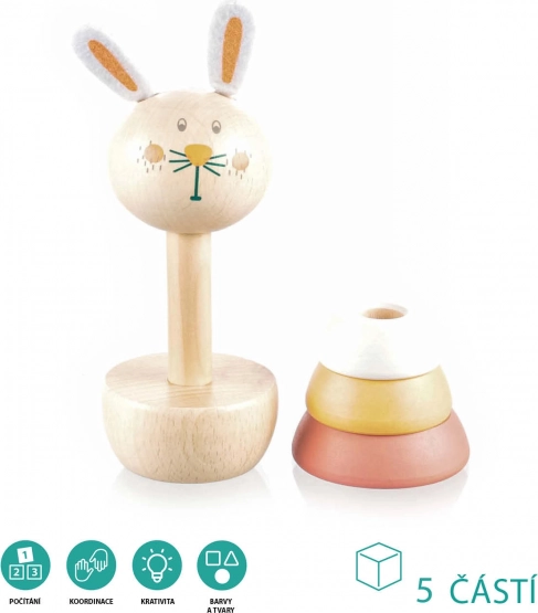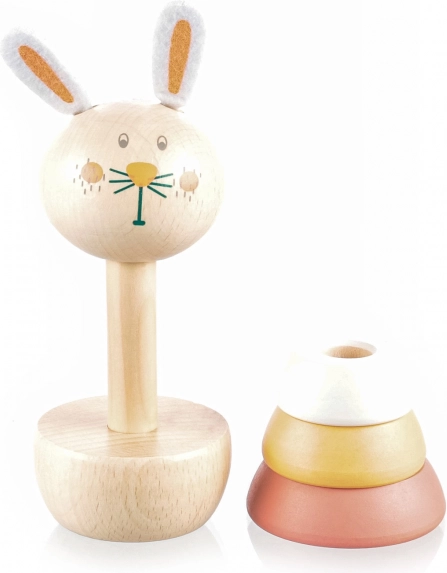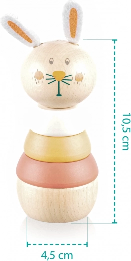 Zajmij swoje dziecko na długie godziny tą wspaniałą zabawką do nakładania w kształcie króliczka. Dzieci będą bawić się drewnianymi krążkami, które można rozkładać i ponownie układać. Uroczy design króliczka cieszy i przyciąga uwagę, a jednocześnie w zabawny sposób wspiera rozwój motoryki oraz myślenia przestrzennego.