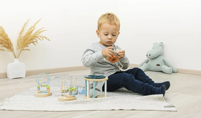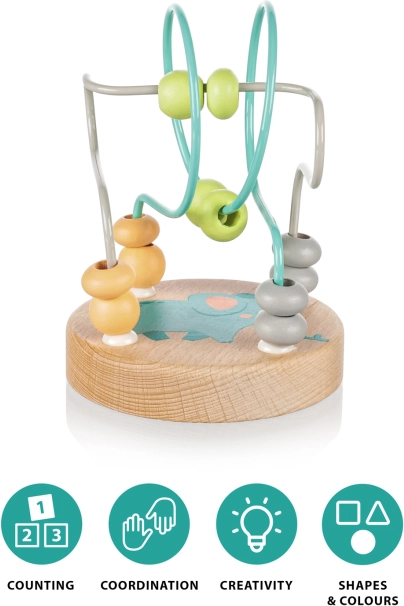 Ten drewniany koralikowy labirynt jest idealny dla każdego dziecka, które chce odkrywać świat za pomocą zmysłów. Został zaprojektowany tak, aby pomagać rozwijać małą motorykę, koordynację ręka-oko oraz wzmacniać wyobraźnię przestrzenną. Wszystkie elementy wykonano z wysokiej jakości drewna, a farby na bazie wody zapewniają bezpieczną zabawę.