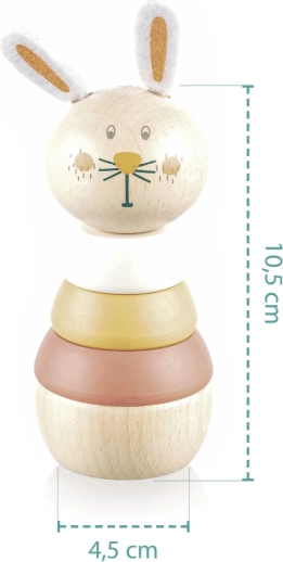 Dziecko nauczy się także rozpoznawania wielkości i podstawowego liczenia. Zabawka wykonana jest z wysokiej jakości drewna bukowego i pomalowana farbami na bazie wody.