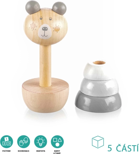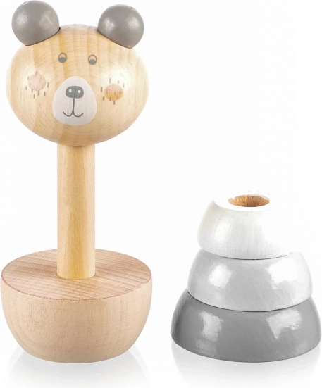 Zajmij dziecko na długie godziny! Nakładanka niedźwiedź to zestaw wykonany z drewnianych elementów, które można rozkładać i ponownie nakładać. Uroczy design niedźwiedzia zaciekawi dziecko i w zabawny sposób pomoże rozwijać motorykę oraz myślenie przestrzenne.