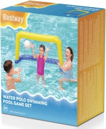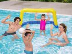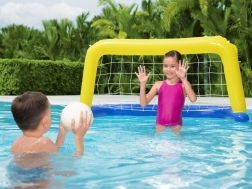 Nadmuchiwana bramka BESTWAY wnosi do każdego basenu solidną dawkę sportowej zabawy. Lekkie i bezpieczne wykonanie z wysokiej jakości winylu gwarantuje długą żywotność, a nylonowa siatka niezawodnie wyłapuje każdy strzał. Dzięki zaworom bezpieczeństwa bramka jest szybko gotowa do gry i równie szybko ją złożysz.