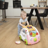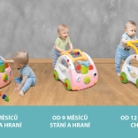 Odkryj praktyczne i pełne zabawy rozwiązanie na pierwsze kroki – aktywny chodzik 3w1 w kształcie autka. Dzięki regulowanej rączce zapewnia stabilne podparcie podczas stania i chodzenia, a ciche kółka z hamulcem dbają o bezpieczeństwo podczas zabawy w miejscu. Od 6 miesięcy działa jako interaktywna zabawka ze światłami i dźwiękami, a później niezawodnie towarzyszy dziecku w nauce chodzenia.