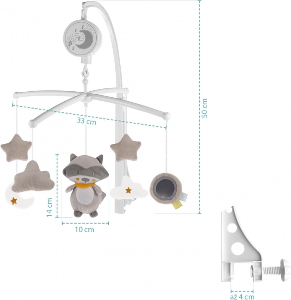 Karuzela jest przeznaczona do standardowych łóżeczek i łatwo się montuje. Nakręcany mechanizm muzyczny działa bez baterii, co jest praktyczne dla rodziców. Pluszowe zabawki są wykonane z wysokiej jakości, bezpiecznych materiałów i są przyjemne w dotyku. Łatwo je odpiąć i mogą służyć także jako mali przytulni przyjaciele.