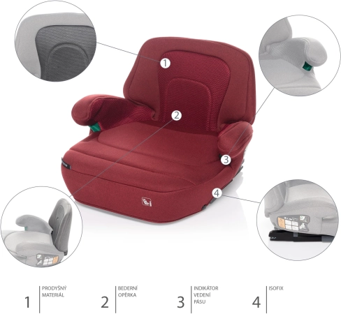 Fotelik samochodowy iBooster i-Size, Bordo Red