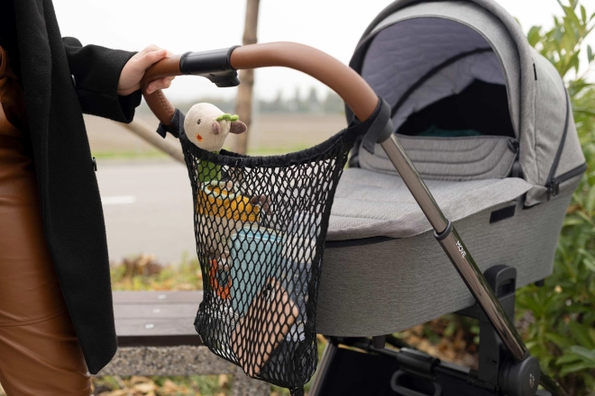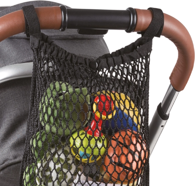 Siatkowa torba na wózek umożliwia trzymanie wszystkich niezbędnych rzeczy zawsze pod ręką. Łatwo ją zamontować do rączki wózka za pomocą rzepów i jest kompatybilna ze wszystkimi modelami. Torba wykonana jest z wytrzymałego i elastycznego materiału (udźwig do 2,5 kg). Jest pojemna, a dzięki możliwości zamknięcia nic z niej nie wypadnie.