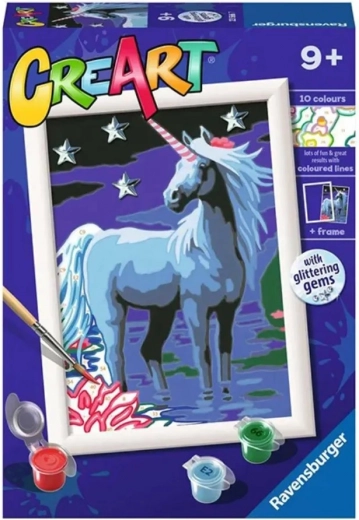 Wspieraj dziecięcą wyobraźnię z kreatywnym zestawem Malowanie po numerach CreArt – Magiczny jednorożec od Ravensburger. Idealny dla dzieci od 9 lat, rozwija małą motorykę, koncentrację i zmysł detalu. Dzięki wysokiej jakości materiałom i przejrzystej instrukcji młodzi artyści doświadczą radości z ukończonego obrazu w domu i w podróży.