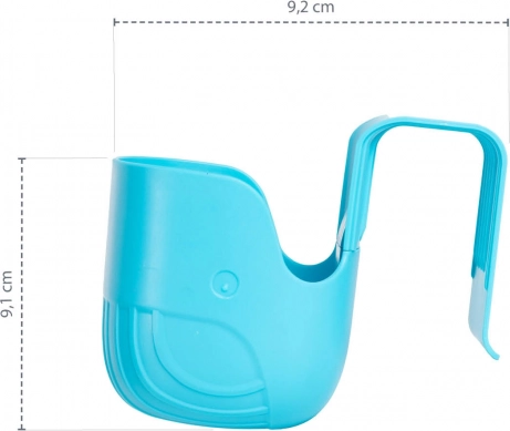 Praktyczny uchwyt na napoje z haczykiem. Można go zawiesić na wózku, foteliku samochodowym, łóżeczku oraz w innych miejscach (szerokość maks. 4 cm). Do uchwytu można włożyć butelkę o maksymalnej średnicy 8 cm.