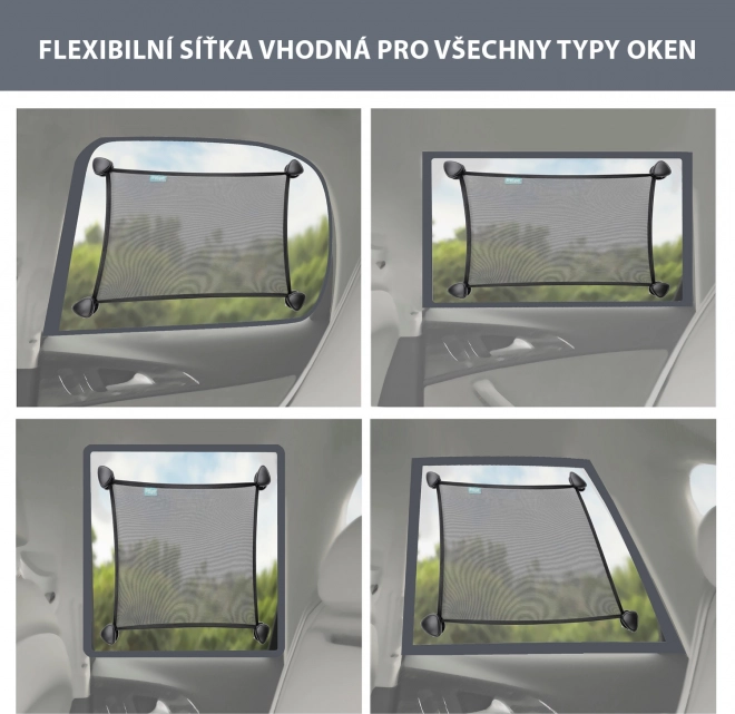 Dzięki przyssawkom do okna elastyczną siatkę można dowolnie stosować na wszystkich szybach w samochodzie i przemieszczać ją dokładnie tam, gdzie jest potrzebna. Ochronna siatka przeciw promieniowaniu UV jest odporna na przetarcia. Dzięki swojej elastyczności potrafi niemal podwoić swój rozmiar.