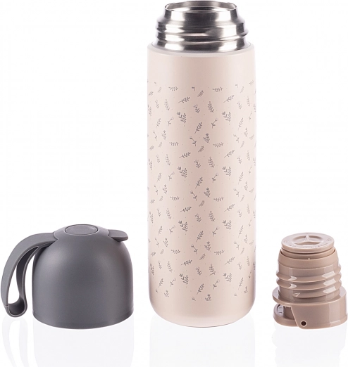 Wysokiej jakości termos na napoje o pojemności 400 ml utrzymuje gorące napoje do 12 godzin, a zimne do 24 godzin. Wykonany jest z wysokiej jakości stali nierdzewnej odpornej na korozję. Szczelna zakrętka zapewnia, że termos nie przecieka, a górny korek do wygodnego nalewania sprawia, że nie oblejesz się nawet podczas jazdy samochodem po nierównej drodze; możesz też być pewien, że dziecko nie poparzy się napojem z termosu dzięki podwójnemu zamknięciu. Pokrywkę termosu można używać jako kubek.