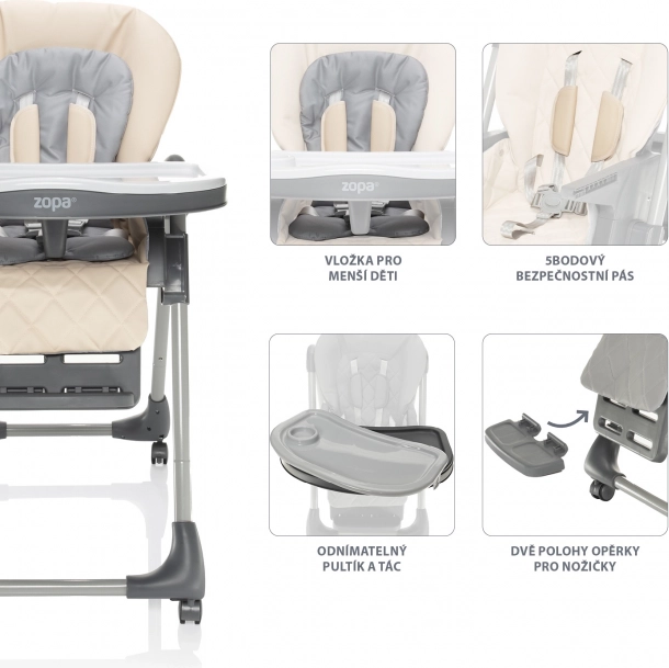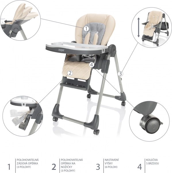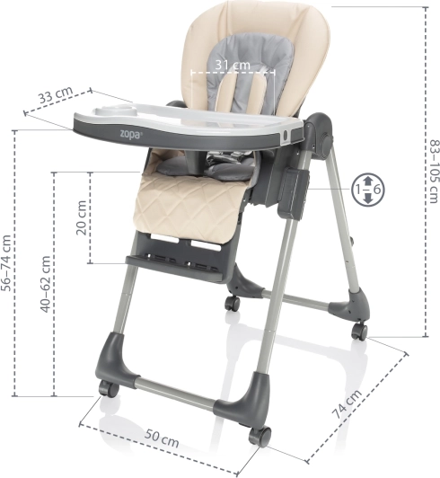 Krzesełko Monti 2 dzięki 6 pozycjom regulacji wysokości dopasuje się do każdego stołu. Dzięki 3 pozycjom oparcia pleców, 3 pozycjom podnóżka oraz 3 poziomom regulacji odległości dziecka od tacki, Monti 2 stanie się świetnym towarzyszem zarówno podczas posiłków, jak i odpoczynku. Oparcie można ustawić niemal do pozycji leżącej, co czyni z wielofunkcyjnego Monti 2 leżaczek odpowiedni już od narodzin dziecka. Dodatkowo spełnia normy bezpieczeństwa EN 14988 i EN 12790, co czyni je całkowicie bezpiecznym towarzyszem spokojnego karmienia.