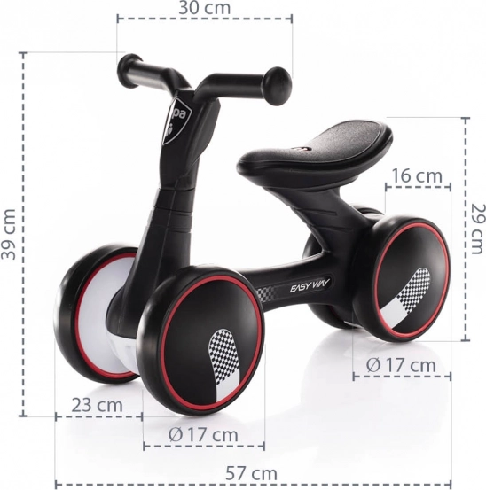 Odróżadło Easyway to nowość zapewniająca zabawę Twoim dzieciom od 18 miesięcy. Sportowy design opiera się na solidnej konstrukcji z wytrzymałą ramą. Oczywiście zastosowano tu kółka z technologią „silent wheels” dla cichej i bezgłośnej jazdy. Możesz wybierać spośród kilku wersji kolorystycznych.