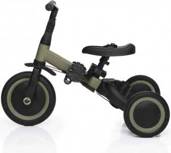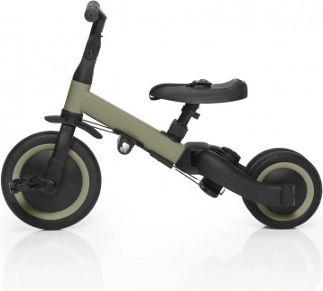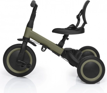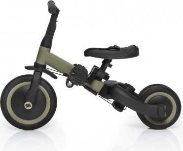 - 3 etapy użytkowania: trójkołowiec (18–36 mies.), jeździk (36–48 mies.), rowerek (48–60 mies.)