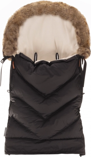 Ciepły śpiworek w stylowym designie, odpowiedni zarówno do gondoli, jak i do wózka spacerowego. Chroni dziecko przed chłodem, deszczem i porywistym wiatrem dzięki wierzchniej tkaninie odpornej na wiatr i wodę oraz wyjątkowo ciepłej wyściółce, uzupełnionej o futrzany kołnierz.