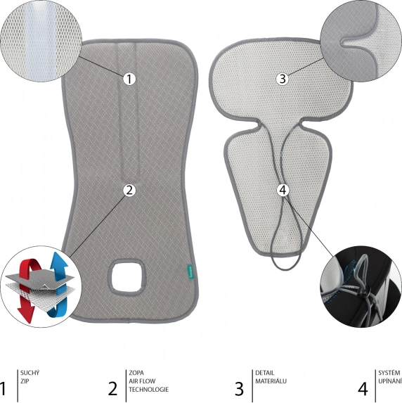 Wkładka ZOPA Breeze dla grupy 2/3 została opracowana we współpracy z rodzicami, aby rozwiązać najczęstsze problemy letnich podróży. Unikatowa struktura 3D i technologia Air Flow umożliwiają przepływ powietrza między dzieckiem a fotelikiem, dzięki czemu dziecko mniej się poci i czuje się komfortowo nawet podczas dłuższych tras.