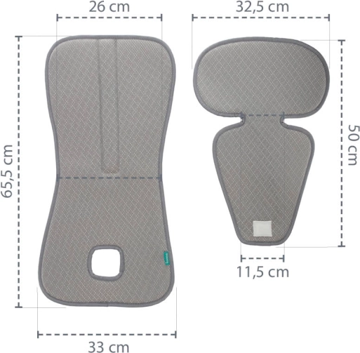Sprytna, dwuczęściowa konstrukcja dopasowuje się do pozycji zagłówka i wielkości fotelika – część siedziska, oparcia i zagłówka pozostają zawsze osłonięte. Kształt wkładki jest zoptymalizowany pod prawidłowe prowadzenie pasa bezpieczeństwa i nie ogranicza wykorzystania dodatkowych punktów kotwiczenia. Montaż jest szybki dzięki systemowi Easy Fit i rzepom, a pielęgnacja prosta (pranie ręczne).