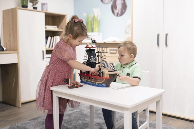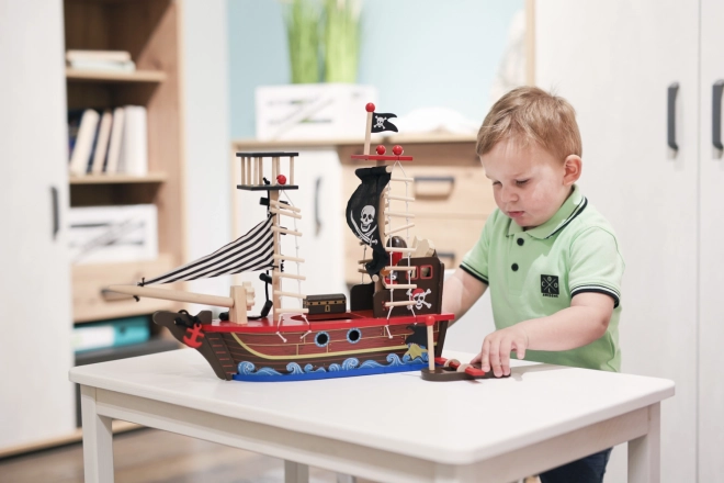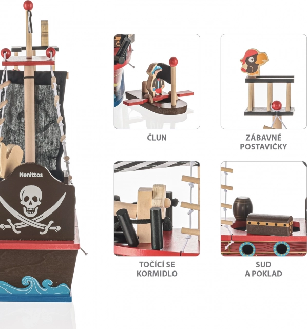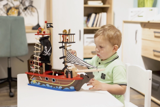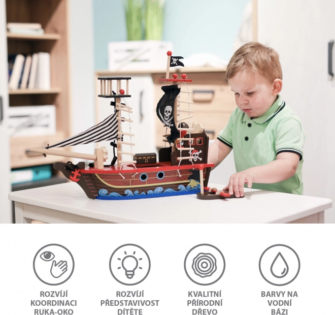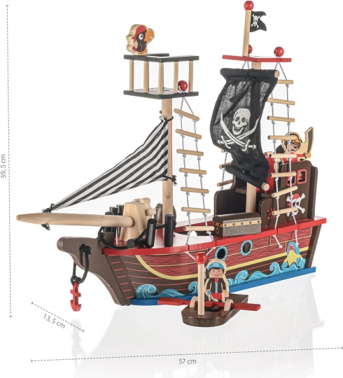 Wejdź na pokład z drewnianym statkiem pirackim, który zachwyci każde dziecko pięknymi detalami i zabawnym wzornictwem. Został wykonany z nietoksycznych materiałów, bezpieczny dla dzieci od 3 lat, a przy tym stanowi estetyczny dodatek do pokoju dziecięcego.