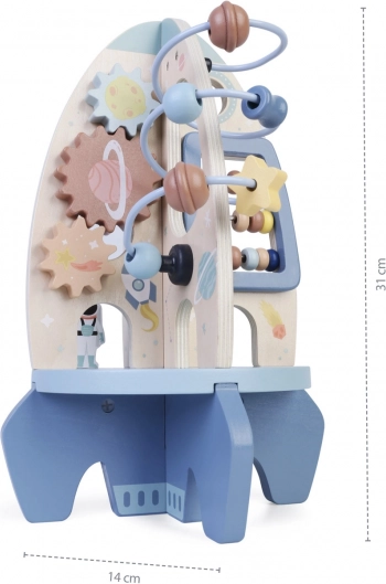 Rakieta zawiera przesuwane kółka zębate, ruchome koraliki i wiele więcej, zapewniając angażujące i pouczające doświadczenia.