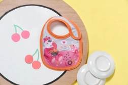Śliniaczek z wesołymi elementami graficznymi, które dodają atrakcyjności zabawie.