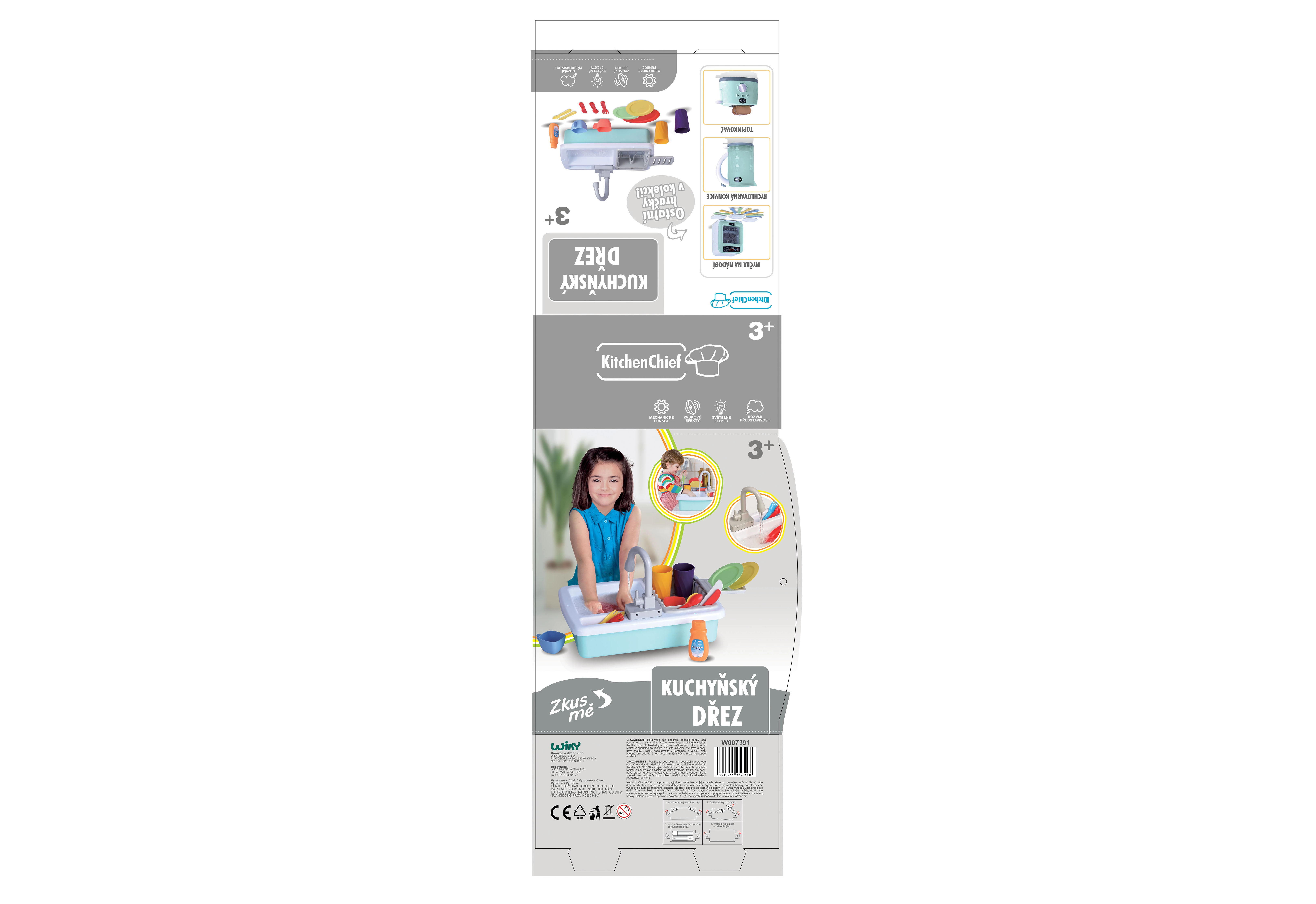 W skład opakowania wchodzi praktyczne wyposażenie kuchenne, z którym dzieci mogą zacząć od razu: kubeczki, talerzyki, filiżanki, sztućce, a także płyn do mycia naczyń dla jeszcze bardziej realistycznej zabawy. Zlewozmywak jest świetnym uzupełnieniem każdej dziecięcej kuchni i zapewni rozrywkę na długie godziny.