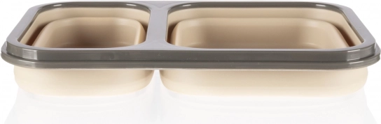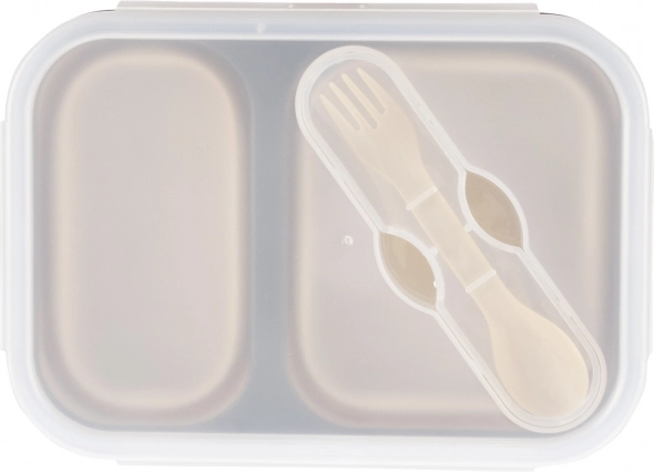 Silikonowe pudełko śniadaniowe z sztućcami duże, Sand Beige