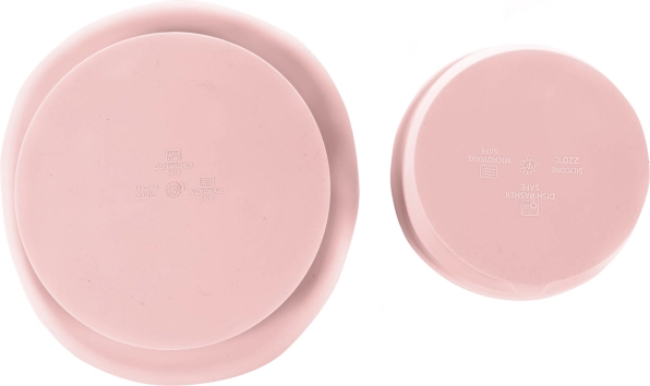 Naczynia są wykonane z bezpiecznego silikonu spożywczego, który jest nietoksyczny i odporny na stłuczenie. Dla małych dzieci silikon jest bardziej naturalny niż plastik czy metal. Dzieci często poznają świat ustami i bawiąc się naczyniami czy je gryząc, nie grozi im uraz, ponieważ są one wykonane z elastycznego, miękkiego, a jednocześnie bardzo wytrzymałego materiału. Mocna, antypoślizgowa przyssawka sprawia, że miska i dzielony talerzyk trzymają się stołu lub blatu wysokiego krzesełka, co zapobiega przewróceniu lub upadkowi; nawet dla bardziej rozbrykanych dzieci będzie bardzo trudne podnieść te naczynia i zrzucić je na podłogę.