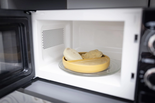 Talerzyk wykonany jest z bezpiecznego, spożywczego silikonu, który jest nietoksyczny i odporny na stłuczenie. Dla małych dzieci silikon jest bardziej naturalny niż plastik czy metal. Dzieci często poznają świat ustami i podczas zabawy talerzykiem oraz gryzienia go nie ma ryzyka zranienia, ponieważ jest on wykonany z elastycznego, miękkiego, a jednocześnie bardzo wytrzymałego materiału. Silna, antypoślizgowa przyssawka sprawia, że talerzyk trzyma się stołu lub tacki wysokiego krzesełka, zapobiegając przewróceniu lub upadkowi; dla bardziej ruchliwych dzieci bardzo trudno będzie podnieść to naczynie i zrzucić je na podłogę.