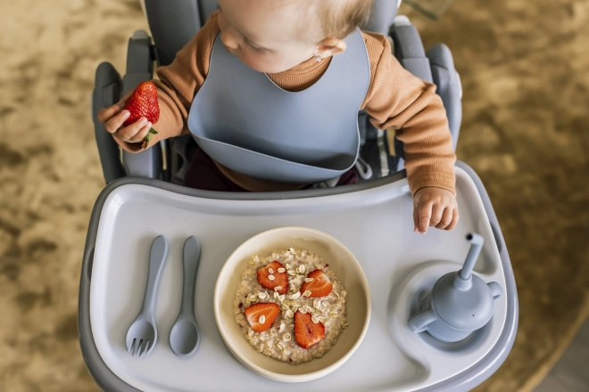 Śliniak wykonany jest z bezpiecznego silikonu spożywczego, który jest nietoksyczny i odporny na uszkodzenia. Oferuje regulację w 6 rozmiarach, dzięki czemu dopasowuje się do szyi dziecka i zapewnia maksymalnie komfortowe jedzenie. Dużą zaletą silikonowego materiału jest odporność na zapachy i odbarwienia. Jeśli na śliniaku pozostanie plama, wystarczy go wygotować w gorącej wodzie – w ten sposób można śliniak także wysterylizować. Sprytna kieszonka na spadające jedzenie zadba o to, by posiłek twojego malucha odbył się bez zbędnego bałaganu.