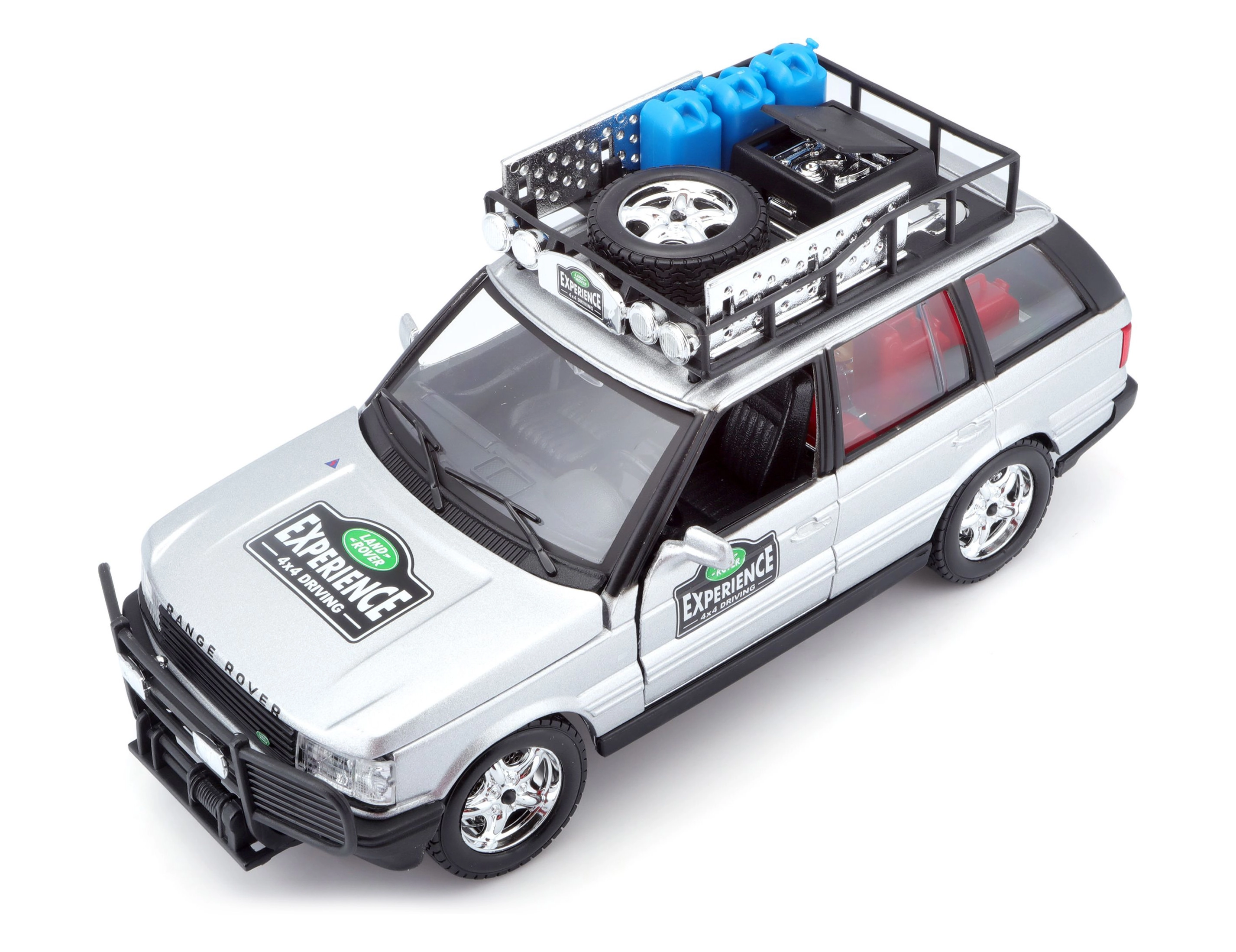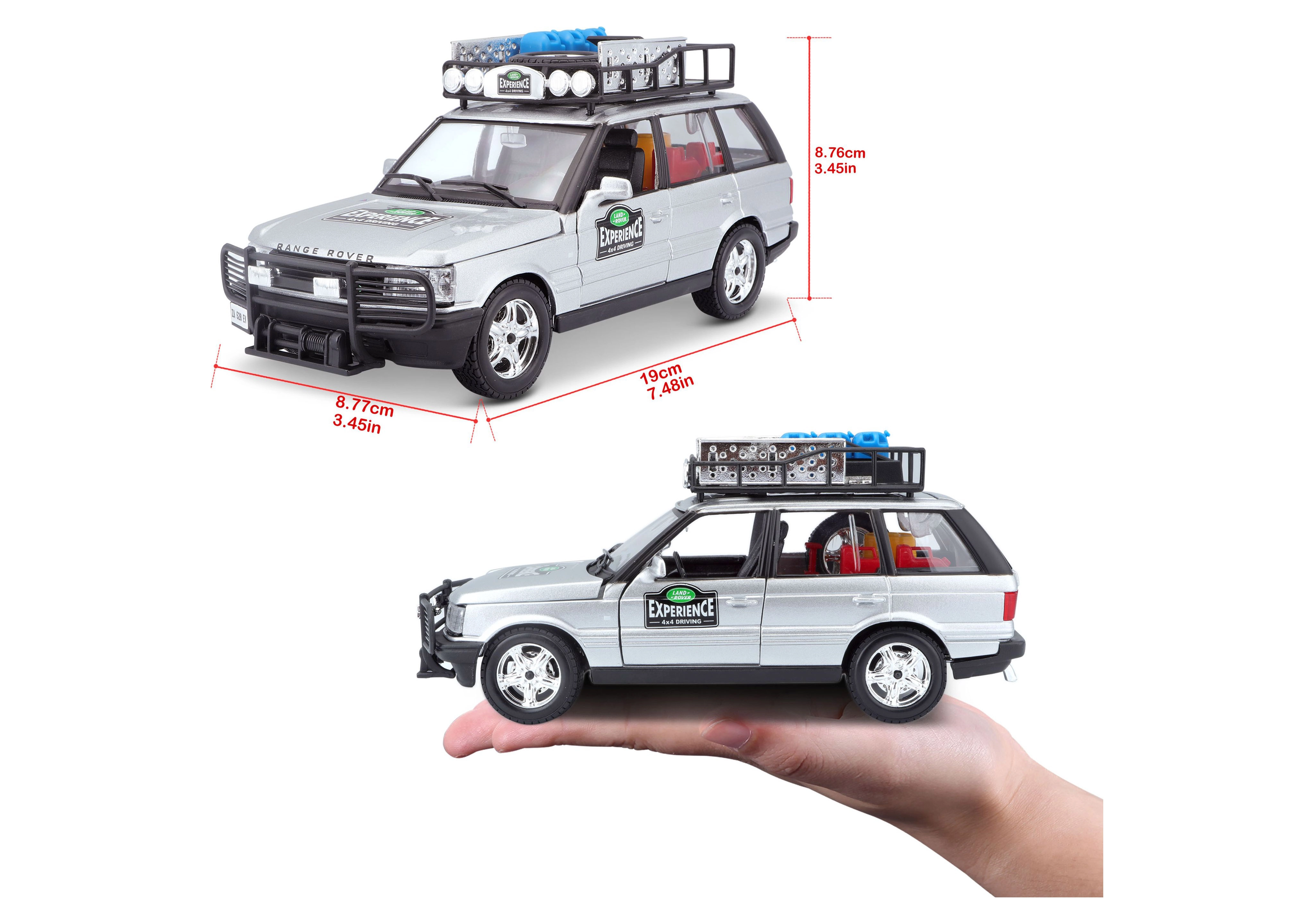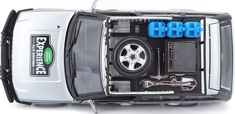 Ten precyzyjnie wykonany model RANGE ROVERA w skali 1:24 oferuje autentyczne detale, które zachwycą każdego miłośnika pojazdów terenowych. Srebrne nadwozie uzupełnione bagażnikiem dachowym z akcesoriami, przednim pałąkiem ochronnym oraz realistycznymi nadrukami tworzy atrakcyjny wygląd do zabawy i ekspozycji.