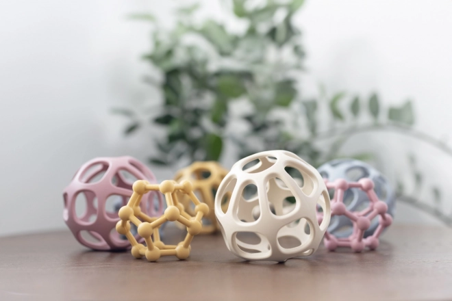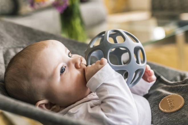 Gryzak wykonany jest z bezpiecznego silikonu spożywczego, który jest nietoksyczny i odporny na pęknięcia. Dla małych dzieci silikon jest bardziej naturalny niż plastik czy metal. Konstrukcja w kształcie otwartej piłeczki doskonale pasuje nawet do najmniejszej piąstki, a dziecko łatwo chwyci ją pod każdym kątem. Dzięki swojemu kształtowi gryzak stymuluje motorykę ręki, zwłaszcza koordynację ręka-oko.