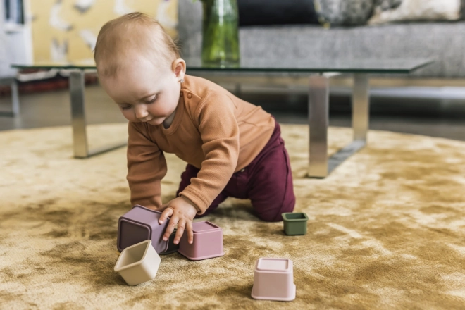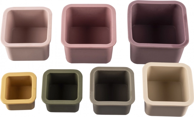 Kubeczki do układania to bezpieczna zabawa na długie godziny dzięki zastosowaniu silikonu spożywczego, który jest nietoksyczny i odporny na stłuczenie. Dla małych dzieci silikon jest bardziej naturalny niż plastik czy metal. Bardzo przyjemne do gryzienia i stymulacji obciążonych i wrażliwych dziąseł podczas wyrzynania ząbków.